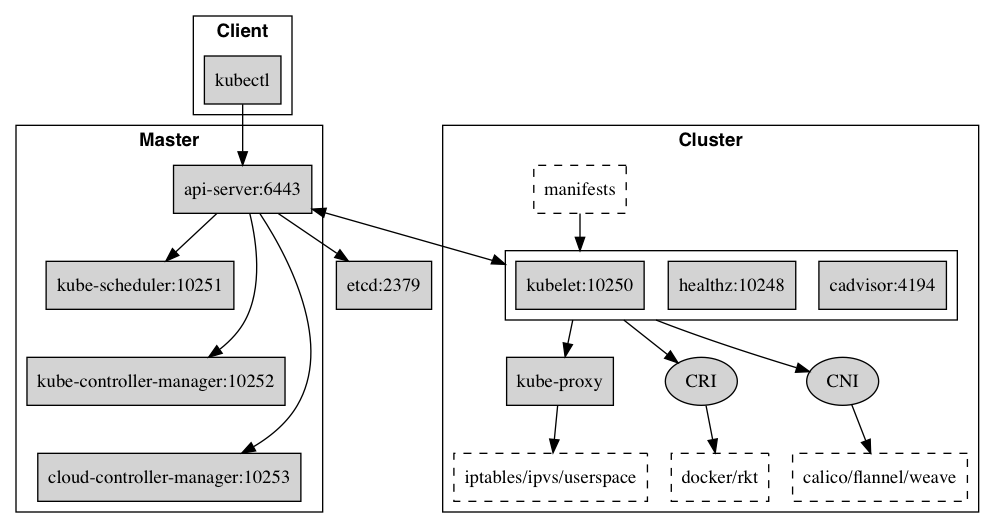 - Kubernetes 内部:CRI、CNI、CVI、镜像仓库、Cloud Provider、集群自身的配置和管理等