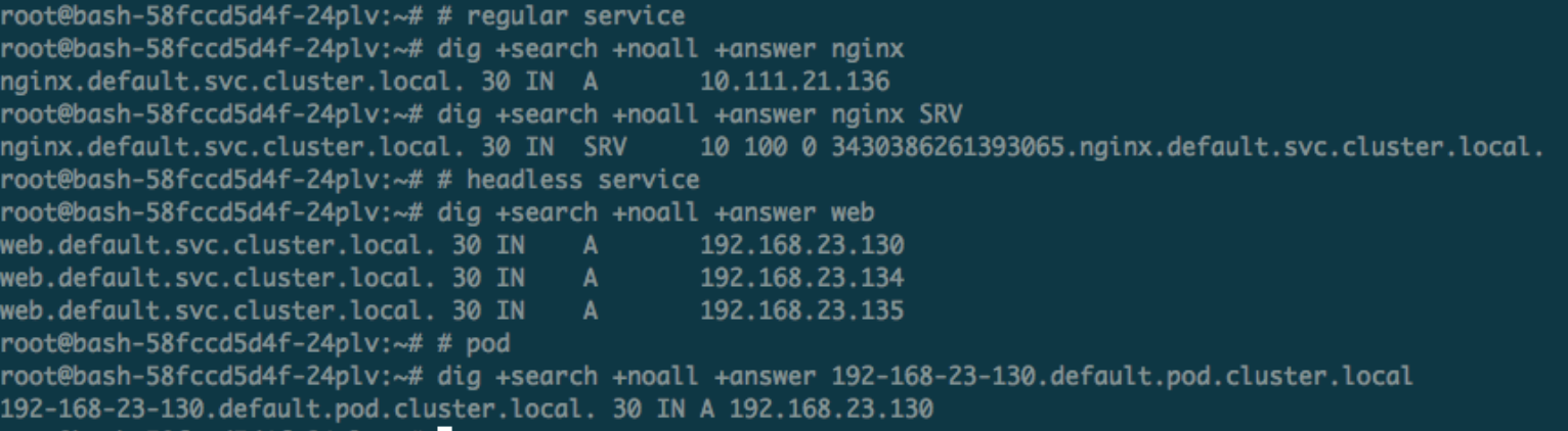 my-svc.my-namespace.svc.cluster.local,解析 IP 分为两种情况- 普通 Service 解析为 Cluster IP