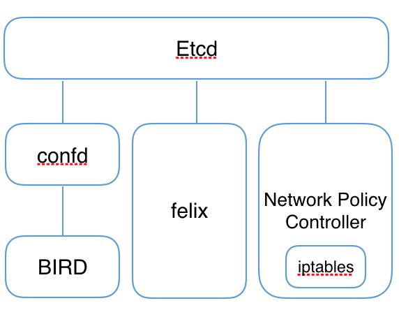 Calico 主要由 Felix、etcd、BGP client 以及 BGP Route Reflector 组成