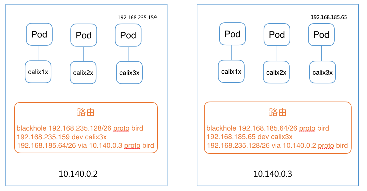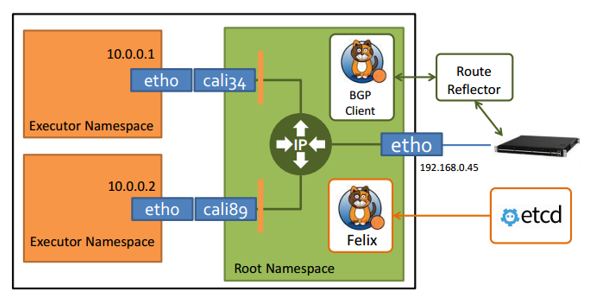 - BGP Route Reflector(BIRD),大规模部署时使用,摒弃所有节点互联的 mesh 模式,通过一个或者多个 BGP Route Reflector 来完成集中式的路由分发。